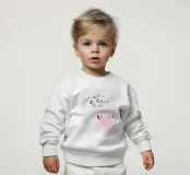 Le nostre felpe per neonati sono realizzate all'85% in cotone biologico ed etico e al 15% in poliestere riciclato.