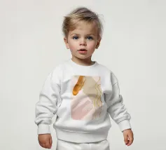 Le nostre felpe per neonati sono realizzate all'85% in cotone biologico ed etico e al 15% in poliestere riciclato.