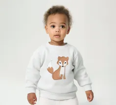 Le nostre felpe per neonati sono realizzate all'85% in cotone biologico ed etico e al 15% in poliestere riciclato.
