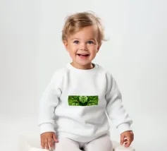 Le nostre felpe per neonati sono realizzate all'85% in cotone biologico ed etico e al 15% in poliestere riciclato.