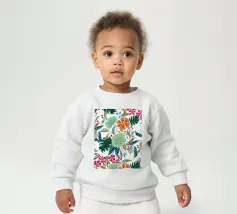 Le nostre felpe per neonati sono realizzate all'85% in cotone biologico ed etico e al 15% in poliestere riciclato.