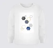Forme esagonali di dimensioni variabili presentano immagini diverse, tra cui un pianeta e un cielo stellato. Gli esagoni sono disposti in modo sparso.