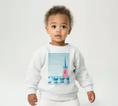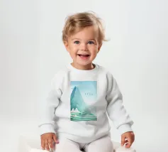 Le nostre felpe per neonati sono realizzate all'85% in cotone biologico ed etico e al 15% in poliestere riciclato.