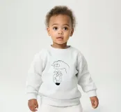 Le nostre felpe per neonati sono realizzate all'85% in cotone biologico ed etico e al 15% in poliestere riciclato.