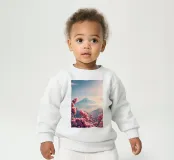 Le nostre felpe per neonati sono realizzate all'85% in cotone biologico ed etico e al 15% in poliestere riciclato.