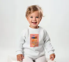 Le nostre felpe per neonati sono realizzate all'85% in cotone biologico ed etico e al 15% in poliestere riciclato.