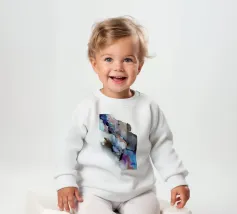 Le nostre felpe per neonati sono realizzate all'85% in cotone biologico ed etico e al 15% in poliestere riciclato.