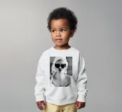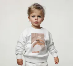 Le nostre felpe per neonati sono realizzate all'85% in cotone biologico ed etico e al 15% in poliestere riciclato.