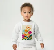 Le nostre felpe per neonati sono realizzate all'85% in cotone biologico ed etico e al 15% in poliestere riciclato.