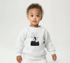 Le nostre felpe per neonati sono realizzate all'85% in cotone biologico ed etico e al 15% in poliestere riciclato.