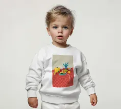 Le nostre felpe per neonati sono realizzate all'85% in cotone biologico ed etico e al 15% in poliestere riciclato.