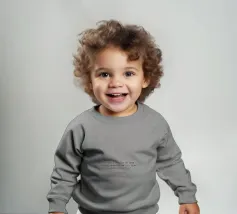 Le nostre felpe per neonati sono realizzate all'85% in cotone biologico ed etico e al 15% in poliestere riciclato.