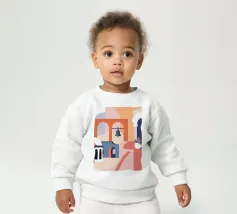 Le nostre felpe per neonati sono realizzate all'85% in cotone biologico ed etico e al 15% in poliestere riciclato.