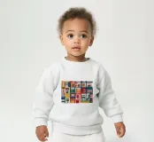 Le nostre felpe per neonati sono realizzate all'85% in cotone biologico ed etico e al 15% in poliestere riciclato.