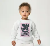 Le nostre felpe per neonati sono realizzate all'85% in cotone biologico ed etico e al 15% in poliestere riciclato.