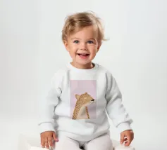 Le nostre felpe per neonati sono realizzate all'85% in cotone biologico ed etico e al 15% in poliestere riciclato.