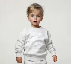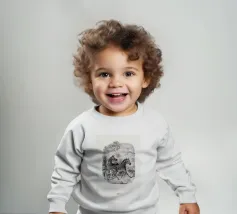 Le nostre felpe per neonati sono realizzate all'85% in cotone biologico ed etico e al 15% in poliestere riciclato.