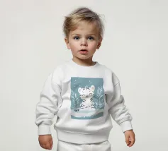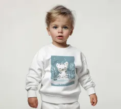 Le nostre felpe per neonati sono realizzate all'85% in cotone biologico ed etico e al 15% in poliestere riciclato.