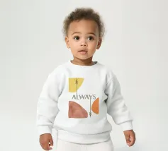 Le nostre felpe per neonati sono realizzate all'85% in cotone biologico ed etico e al 15% in poliestere riciclato.