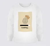 Un cervello viene raffigurato mentre viene riempito di caffè da un bricco, accompagnato da una barra di caricamento sottostante. L'illustrazione suggerisce con umorismo il bisogno di caffè della mente per funzionare correttamente.