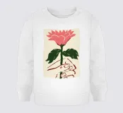 Illustrazione minimalista di una mano che tiene delicatamente un singolo grande fiore rosa. L'immagine simboleggia la fragilità, la bellezza e il legame con la natura.