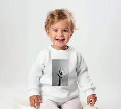 Le nostre felpe per neonati sono realizzate all'85% in cotone biologico ed etico e al 15% in poliestere riciclato.