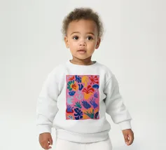 Le nostre felpe per neonati sono realizzate all'85% in cotone biologico ed etico e al 15% in poliestere riciclato.