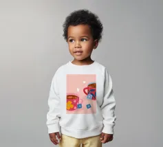 Le nostre felpe per neonati sono realizzate all'85% in cotone biologico ed etico e al 15% in poliestere riciclato.