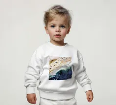 Le nostre felpe per neonati sono realizzate all'85% in cotone biologico ed etico e al 15% in poliestere riciclato.