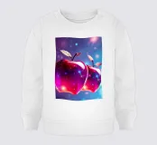 Mele lucide con un vivace disegno cosmico fluttuano su uno sfondo colorato e pieno di luci scintillanti.