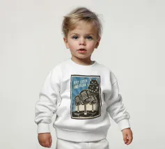Le nostre felpe per neonati sono realizzate all'85% in cotone biologico ed etico e al 15% in poliestere riciclato.
