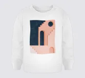 Forme semplici, spazi stranianti e un'atmosfera di mistero e sogno. Un'atmosfera sospesa nel tempo, con elementi architettonici che evocano un senso di calma e irrealtà.