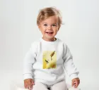 Le nostre felpe per neonati sono realizzate all'85% in cotone biologico ed etico e al 15% in poliestere riciclato.