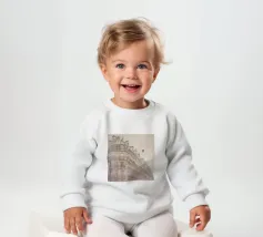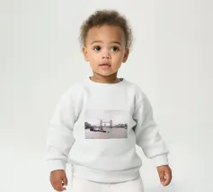 Le nostre felpe per neonati sono realizzate all'85% in cotone biologico ed etico e al 15% in poliestere riciclato.