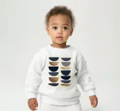 Le nostre felpe per neonati sono realizzate all'85% in cotone biologico ed etico e al 15% in poliestere riciclato.