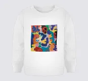 Una composizione astratta giocosa e colorata con una serie di forme organiche simili a blob di varie dimensioni e tonalità. La disposizione stravagante e la tavolozza vibrante creano un senso di gioia spontanea e libertà artistica.