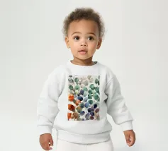 Le nostre felpe per neonati sono realizzate all'85% in cotone biologico ed etico e al 15% in poliestere riciclato.
