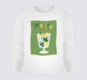 Un'illustrazione grafica brillante e vivace di un cocktail mojito in un bicchiere, con la tipografia 'Mojito' in alto, su un vivace sfondo verde lime.