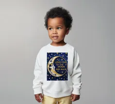 "Moon 01" raffigura una delicata luna piena color rosa con l'affettuosa scritta Love you to the moon and back. Il design minimalista porta calma, calore e un tocco di magia in ogni casa. Ideale per camere da letto, camerette di neonati e bambini o come regalo affettuoso per persone speciali. La combinazione di colori tenui è moderna e senza tempo, perfetta per chi cerca un accento poetico ed emozionale nella propria parete.