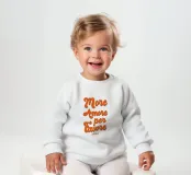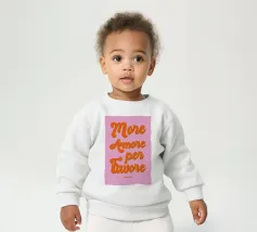 Le nostre felpe per neonati sono realizzate all'85% in cotone biologico ed etico e al 15% in poliestere riciclato.