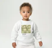 Le nostre felpe per neonati sono realizzate all'85% in cotone biologico ed etico e al 15% in poliestere riciclato.