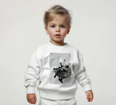 Le nostre felpe per neonati sono realizzate all'85% in cotone biologico ed etico e al 15% in poliestere riciclato.