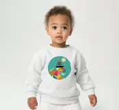 Le nostre felpe per neonati sono realizzate all'85% in cotone biologico ed etico e al 15% in poliestere riciclato.