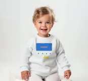 Le nostre felpe per neonati sono realizzate all'85% in cotone biologico ed etico e al 15% in poliestere riciclato.