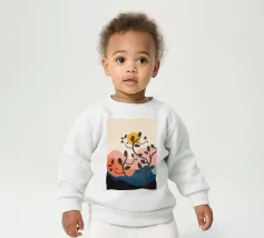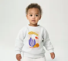 Le nostre felpe per neonati sono realizzate all'85% in cotone biologico ed etico e al 15% in poliestere riciclato.