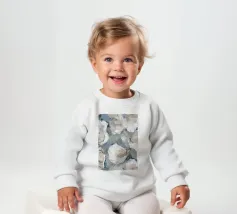 Le nostre felpe per neonati sono realizzate all'85% in cotone biologico ed etico e al 15% in poliestere riciclato.