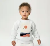 Le nostre felpe per neonati sono realizzate all'85% in cotone biologico ed etico e al 15% in poliestere riciclato.