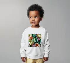 Le nostre felpe per neonati sono realizzate all'85% in cotone biologico ed etico e al 15% in poliestere riciclato.
