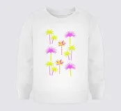 Splendido motivo di palme nei colori neon giallo e rosa su uno sfondo neutro beige latte.