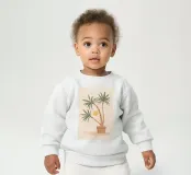 Le nostre felpe per neonati sono realizzate all'85% in cotone biologico ed etico e al 15% in poliestere riciclato.